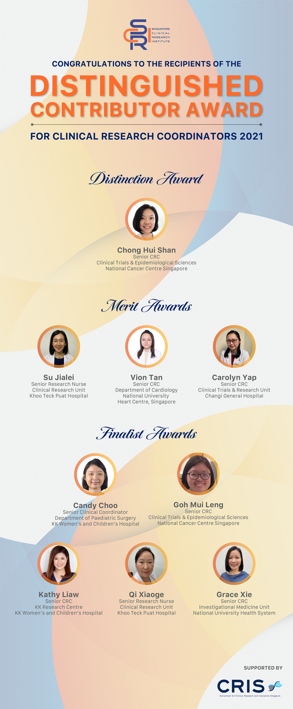 - The Distinguished Contributor Award recognises these unsung heroes of Singapore’s clinical research community.